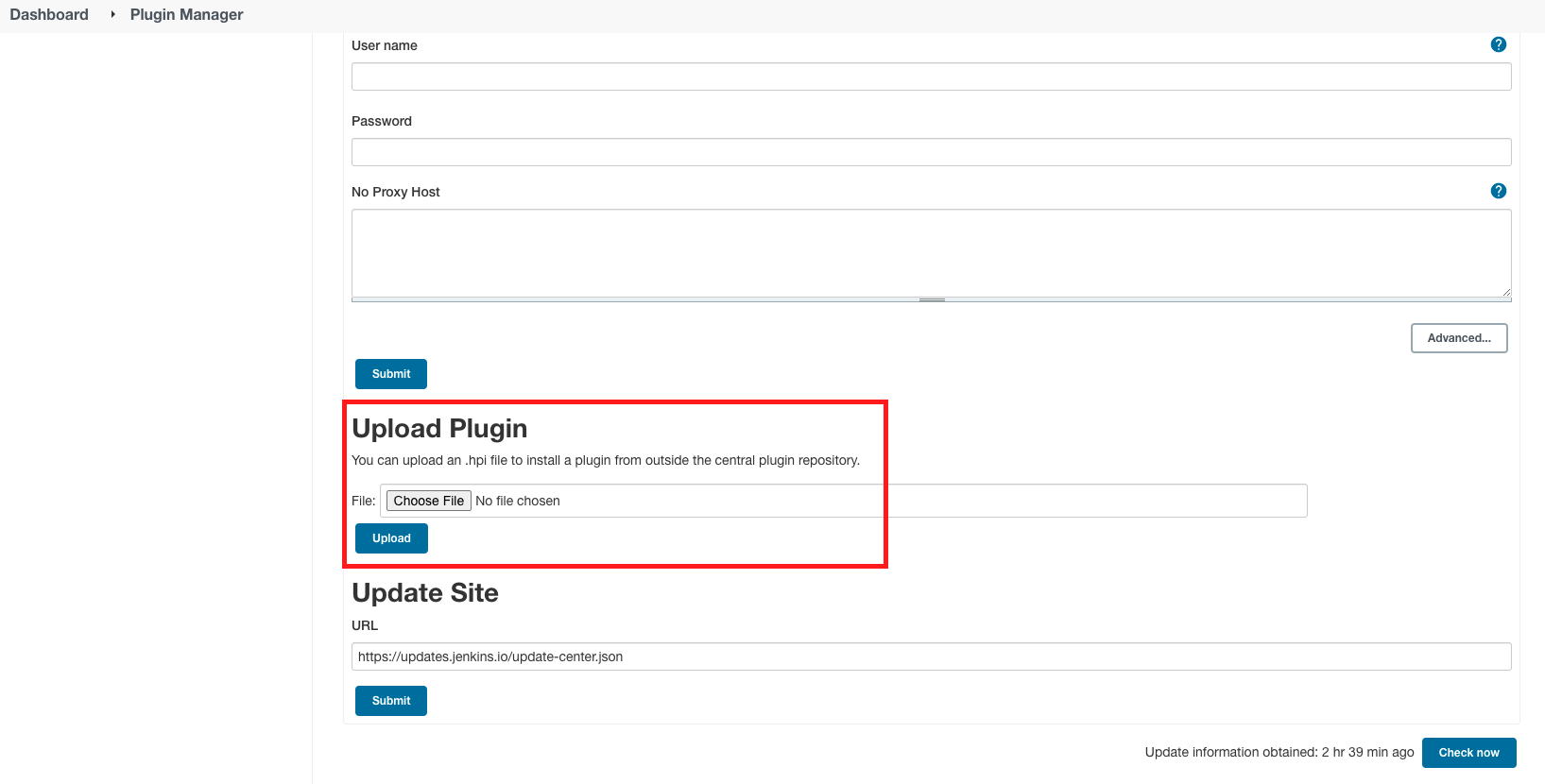 jenkins plugin 파일로 설치는 plugin manager 화면의 advanced 탭에서 (확장자가 hpi 인 파일 업로드)