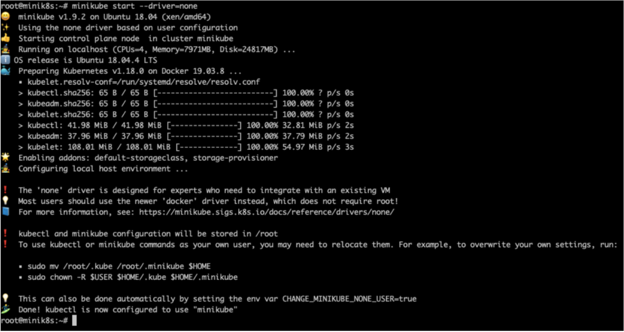 - minikube start --driver=none