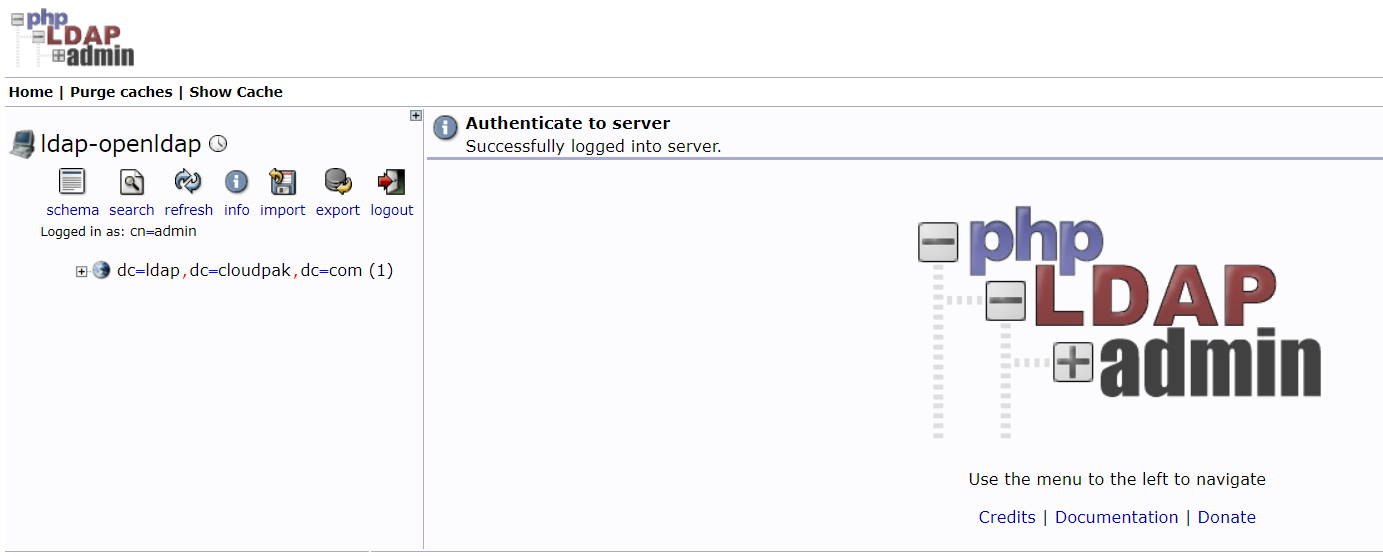 - Bind DN : cn=admin,dc=ldap,dc=cloudpak,dc=com ( ldap 로그인 정보 )